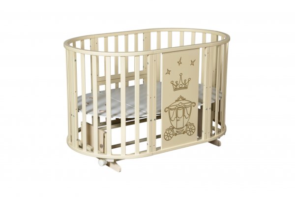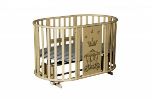 - Овальная кроватка на колесиках (размер спального ложа 125см)