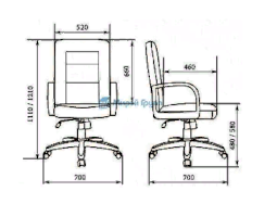 Кресло с высокой спинкой, с подлокотниками прямоугольной замкнутой формы с мягкими накладками обитыми в цвет кресла.