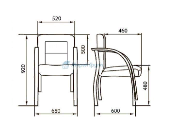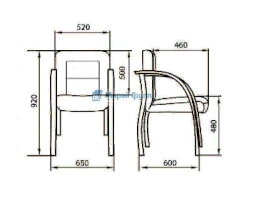 Кресло с низкой спинкой на деревянном каркасе на 4-х ножках.