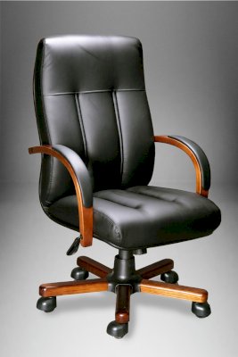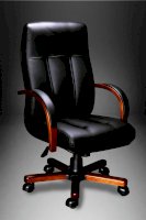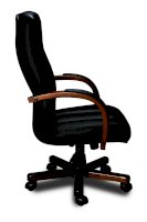 Кресло с высокой спинкой, с подлокотниками дугообразной не замкнутой формы с мягкими накладками обитыми в цвет кресла.