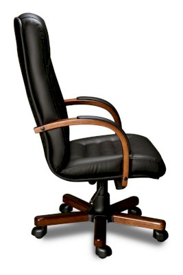 Кресло с высокой спинкой, с подлокотниками дугообразной не замкнутой формы с мягкими накладками обитыми в цвет кресла.
