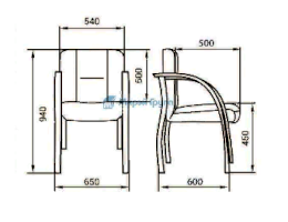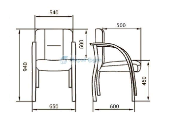 Кресло с низкой спинкой на деревянном каркасе на 4-х ножках.