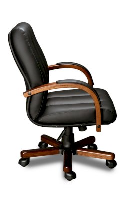 Кресло с низкой спинкой, с подлокотниками дугообразной не замкнутой формы с мягкими накладками обитыми в цвет кресла.