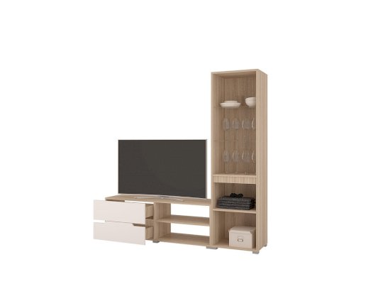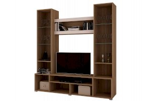 Отсутствие ручек является особенностью серии "Анталия", что придает современный и лаконичный внешний вид. В состав гостиной "Анталия" входит вместительный шкаф, а добавив комод можно получить еще больше места для хранения.