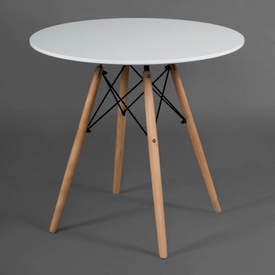 Стильный обеденный стол CINDY NEXT из коллекции Modern создан в стиле работ американских дизайнеров супругов Имз. В своих работах они стремились соединить два основных принципа: простоту и функциональность. Эти принципы удачно сочетает в себе стол CINDY NEXT. Он лаконичен, сдержан, легок и естественен. Визуальная легкость позволяет ему стать идеальным решением даже для небольшого помещения. Круглая форма стола, за которым могут комфортно разместиться четыре человека, располагает к приятному и непринужденному общению. Оригинальные ножки из массива бука и классическое металлическое крепление выгодно выделяют его среди привычной мебели. Надежная столешница из мдф, покрашенная в белый цвет, не требует сложного ухода, выдержит воздействие жидкостей и тепла. Эта элегантная и комфортная модель станет любимым местом отдыха в вашем доме. Стол отлично подойдёт для гостиной, для кухни, для дачи, для ресторана или для кафе. Стол очень прост в сборке, инструкция по сборке прилагается.