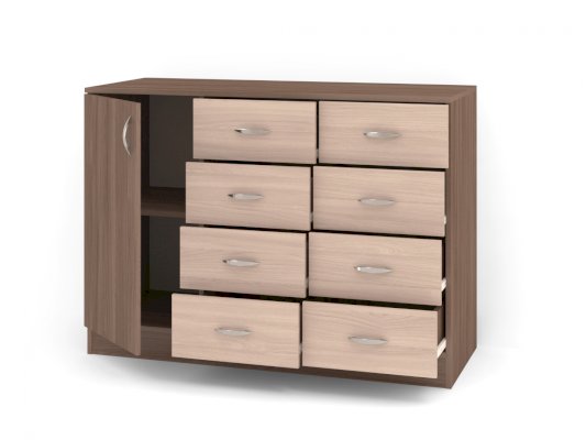 Данное изображение представлено в следующих цветах ЛДСП: корпус - Ясень Шимо тёмный, фасады - Ясень Шимо светлый.