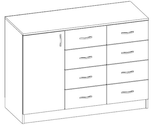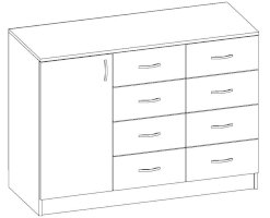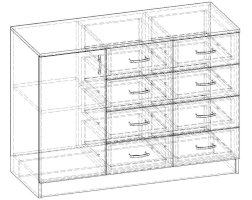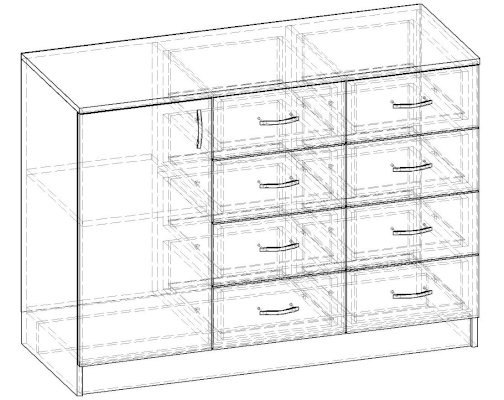 • Корпус, полки и фасады изготовлены из ЛДСП 16 мм с кромкой ПВХ 0,4 мм.