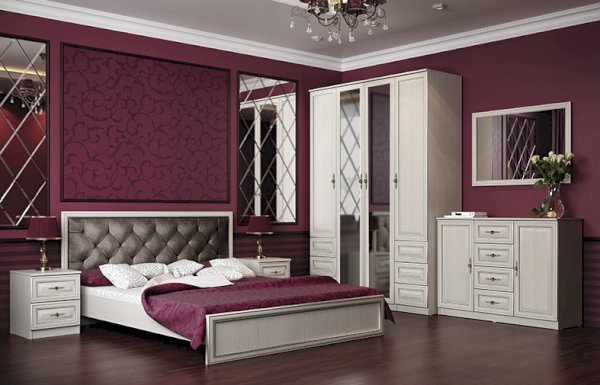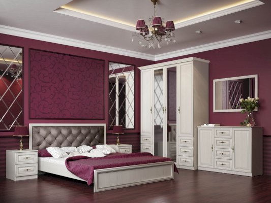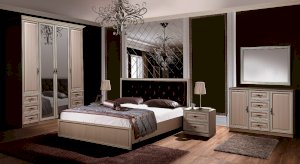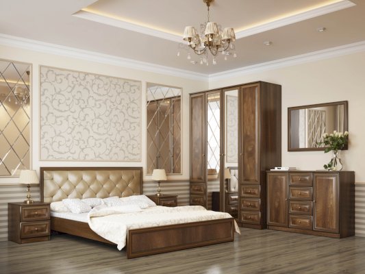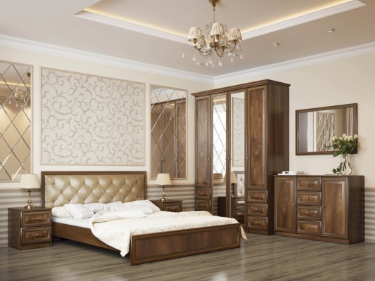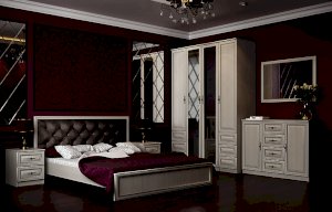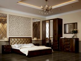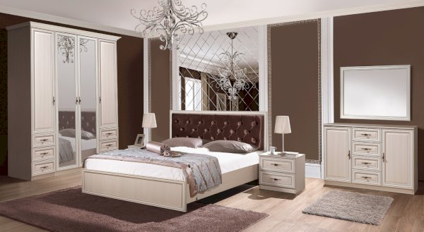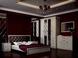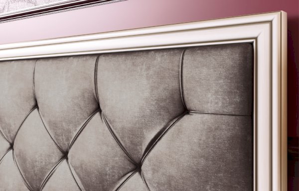 Кровать из серии Габриэлла. Изголовье кровати обшито велюром.