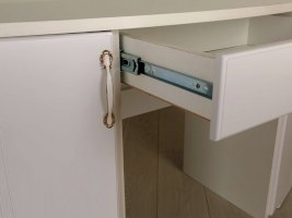 Модульная серия «Виктория» выполнена в стиле «Классика». Особенность серии - фасады МДФ с фрезеровкой, петли с доводчиком на всех фасадах, шариковые направляющие, ручки металлические с белой вставкой, покрытие золото.