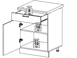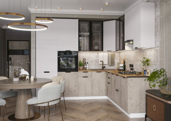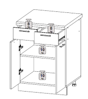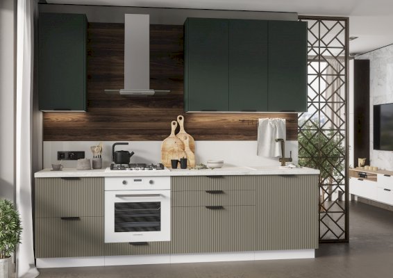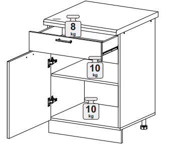 Столешница в комплект не входит и приобретается отдельно из представленного ассортимента. Высота кухонного гарнитура изменяется в зависимости от вашего варианта установки.
