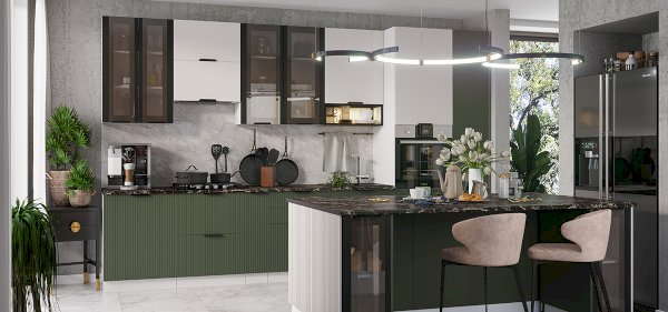 Размер (мм) Верхние модули: Высота: 715/920 Глубина: 300 Нижние модули: Высота: 815 Глубина: 520 Пенал Высота: 2132/2336 Глубина: 570 Столешница (ВхГ) 26/38х600Материал Материал фасада: МДФ 16 мм, Стекло 4 мм тонированое (Софт черный) Материал корпуса: ЛДСП Ручка СА-3/3 металл Шариковые направляющиеЦвет Цвет фасада: Софт лайт хаки, Софт маренго, Софт пихтовый зеленый, Софт пломбир Цвет корпуса: Белый. Цвет столешницы: Антарес, Дуб вотан, Семолина, Сосна бискайская, Черный мрамор, Сосна монрепо.