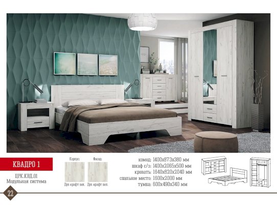 Модульная спальня Квадро-1 (Астрид-Мебель) – товар доступен к покупке в интернет-магазине dommebeli-v-naberezhnyh-chelnah.ru. Цена – 40 528 руб. без учета доставки. Стоимость дополнительных услуг и сроки получения мебели уточняйте у менеджера. Возможен безналичный расчет, оплата по карте на сайте.
