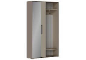 Разделение на секции: Одна часть прихожей включает две одинаковые секции с полками, закрытые створками. В каждой секции предусмотрено по две съёмные полки, что позволяет настраивать пространство под ваши нужды. Открывание створок осуществляется за выступ, что делает использование шкафа более удобным.