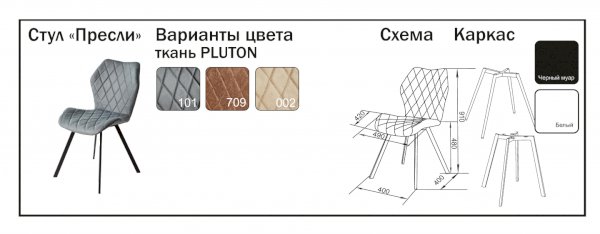 Стул Пресли (Mister Chair) – товар доступен к покупке в интернет-магазине dommebeli-v-naberezhnyh-chelnah.ru. Цена – 6 014 руб. без учета доставки. Стоимость дополнительных услуг и сроки получения мебели уточняйте у менеджера. Возможен безналичный расчет, оплата по карте на сайте.