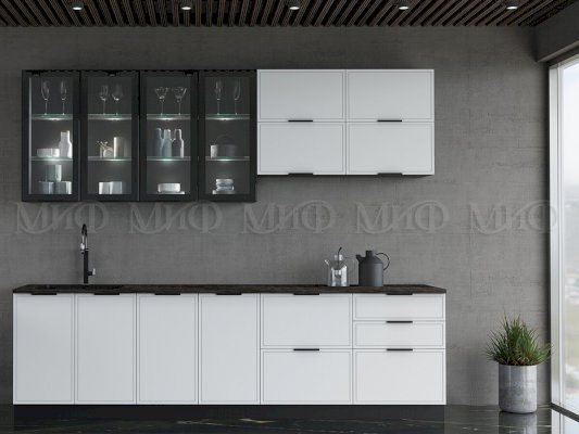 Модульная кухня Николь Холст белый (Миф) – товар доступен к покупке в интернет-магазине dommebeli-v-naberezhnyh-chelnah.ru. Цена – 31 040 руб. без учета доставки. Стоимость дополнительных услуг и сроки получения мебели уточняйте у менеджера. Возможен безналичный расчет, оплата по карте на сайте.