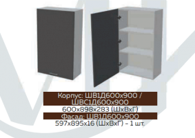 ШВ1Д600 Шкаф верхний с 1 дверью Графит софт