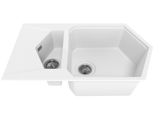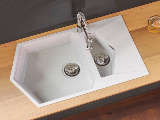 Двойная многоугольная мойка Pond сочетает большую и малую чашу. Мы увеличили глубину основной чаши мойки, что позволяет оптимально размещать в ней посуду. Дополнительная чаша предназначена для мытья овощей, столовых приборов и споласкивания рук. Форма симметричного исполнения удобна при установке и для правшей, и для левшей. Смещенный выпуск облегчает слив воды.
