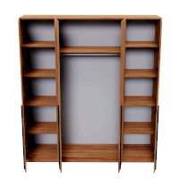 Четырехстворчатый шкаф имеет универсальный вариант для хранения: на боковых полках можно разместить нижнее белье, одежду, постельное белье, а на горизонтальной штанге развесить одежду на вешалках. Сочетание платяного и бельевого отсеков позволяет использовать шкаф в качестве комбинированного.