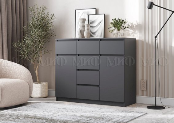 Комод Челси 1200 с 2 дверьми и 6 ящиками (Миф) – товар доступен к покупке в интернет-магазине dommebeli-v-naberezhnyh-chelnah.ru. Цена – 9 920 руб. без учета доставки. Стоимость дополнительных услуг и сроки получения мебели уточняйте у менеджера. Возможен безналичный расчет, оплата по карте на сайте.