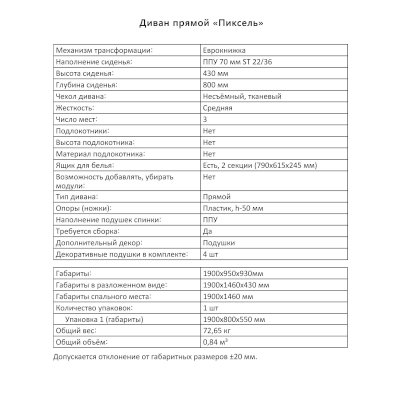 Диван Пиксель (Аквилон) – товар доступен к покупке в интернет-магазине dommebeli-v-naberezhnyh-chelnah.ru. Цена – 30 317 руб. без учета доставки. Стоимость дополнительных услуг и сроки получения мебели уточняйте у менеджера. Возможен безналичный расчет, оплата по карте на сайте.