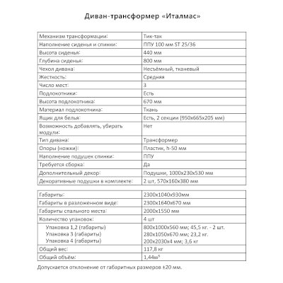 Диван-трансформер Италмас (Аквилон) – товар доступен к покупке в интернет-магазине dommebeli-v-naberezhnyh-chelnah.ru. Цена – 73 394 руб. без учета доставки. Стоимость дополнительных услуг и сроки получения мебели уточняйте у менеджера. Возможен безналичный расчет, оплата по карте на сайте.